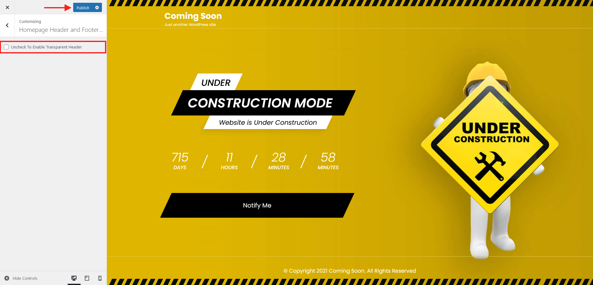 Setting For Enable Homagepage Header and Footer Transparent Option