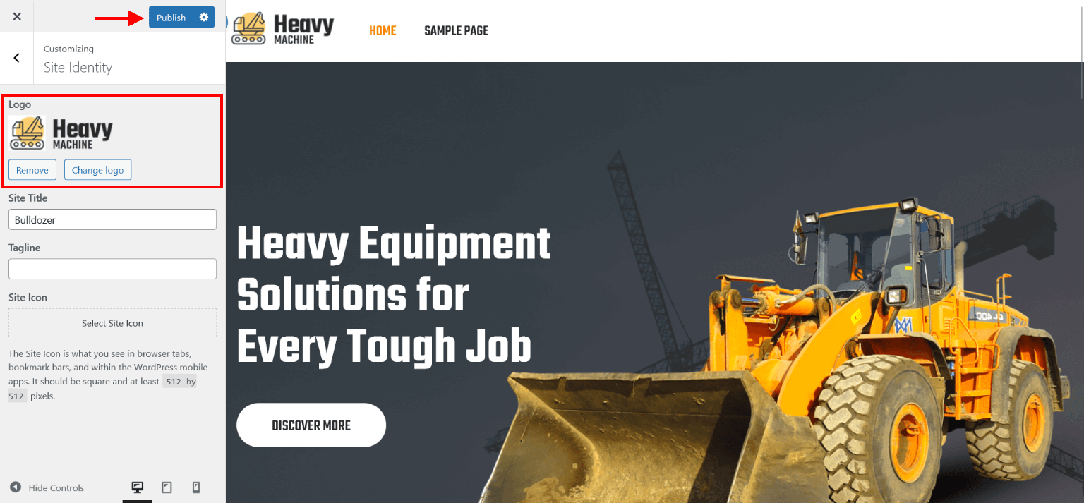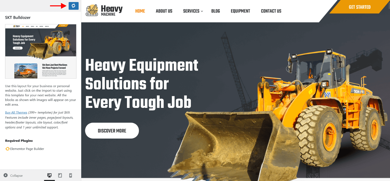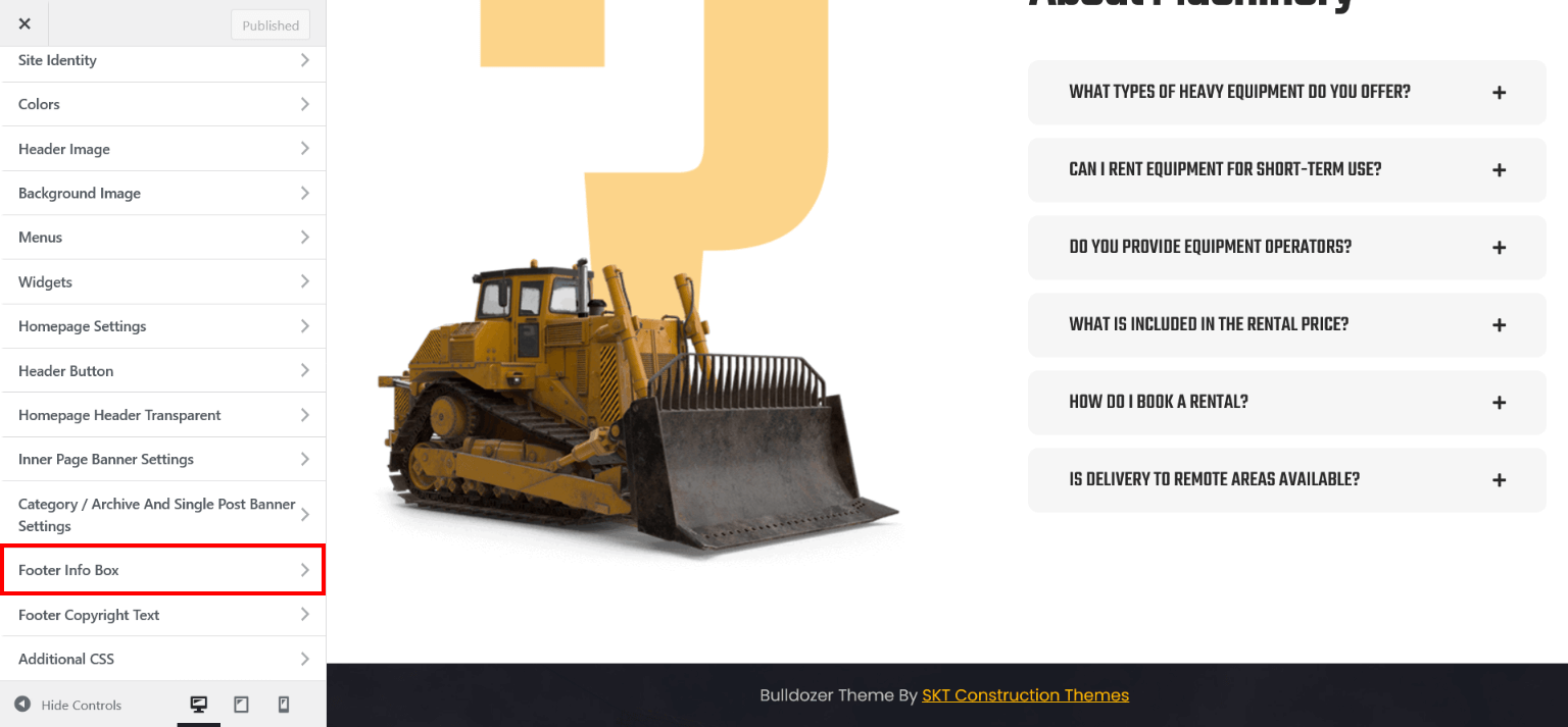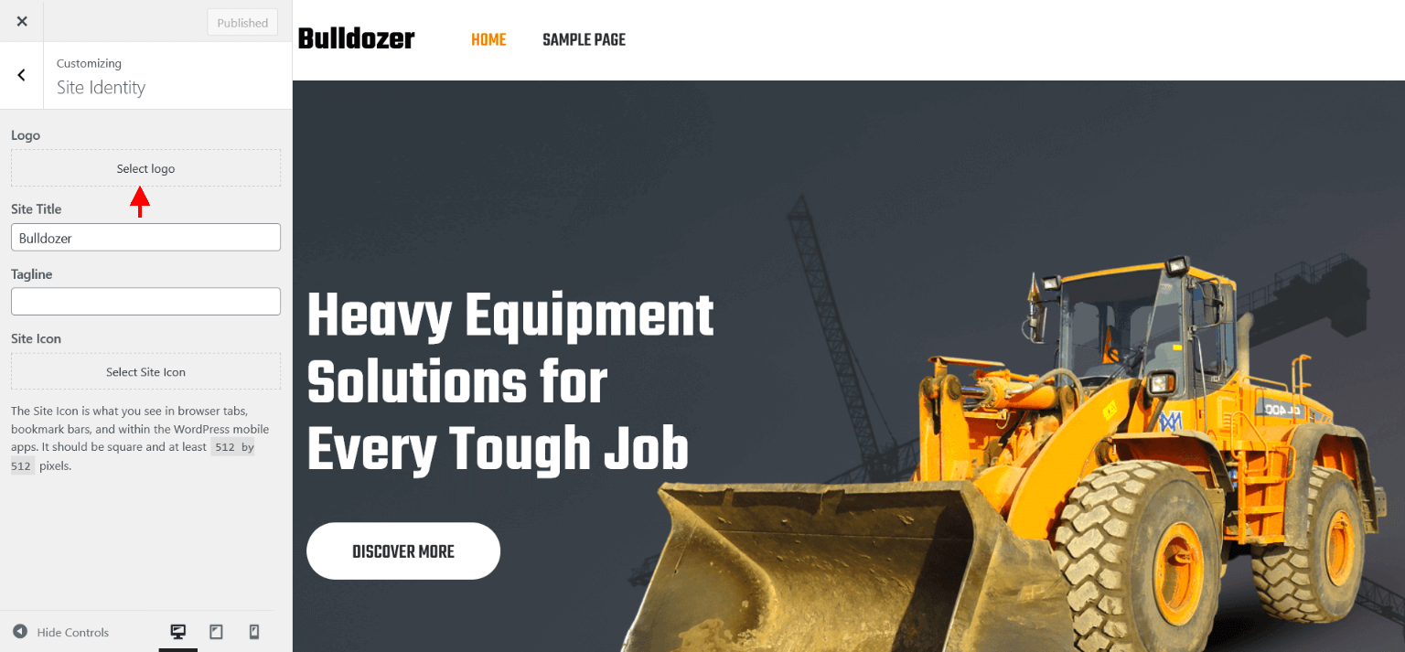 - Now assign imported "SKT Bulldozer" page to static Homepage.