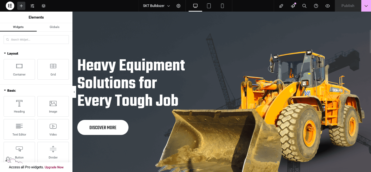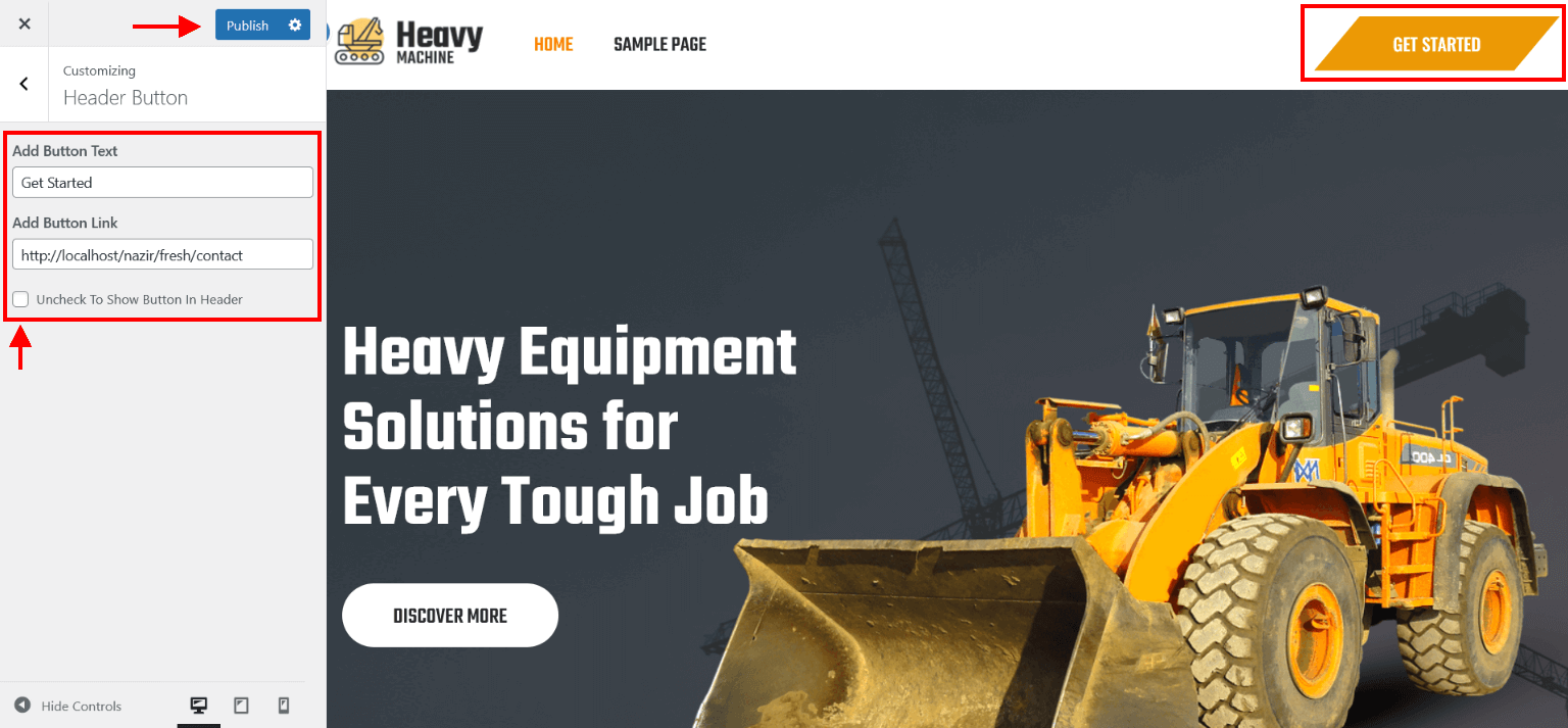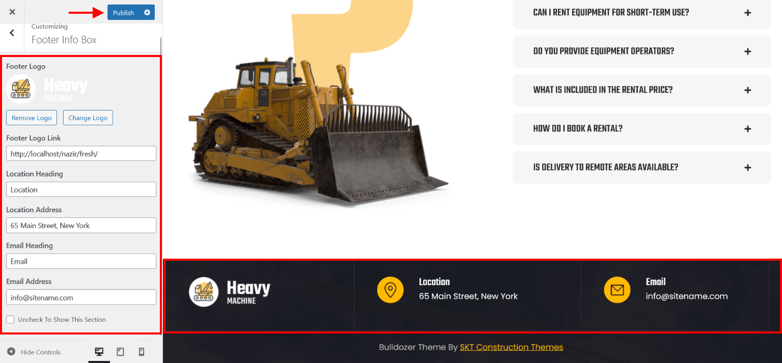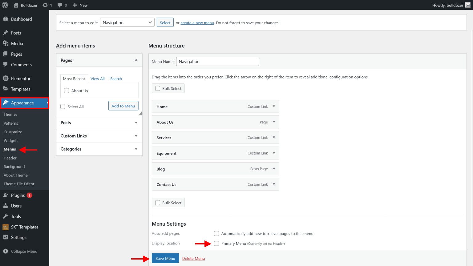 - Now assign imported "SKT Bulldozer" page to static Homepage.