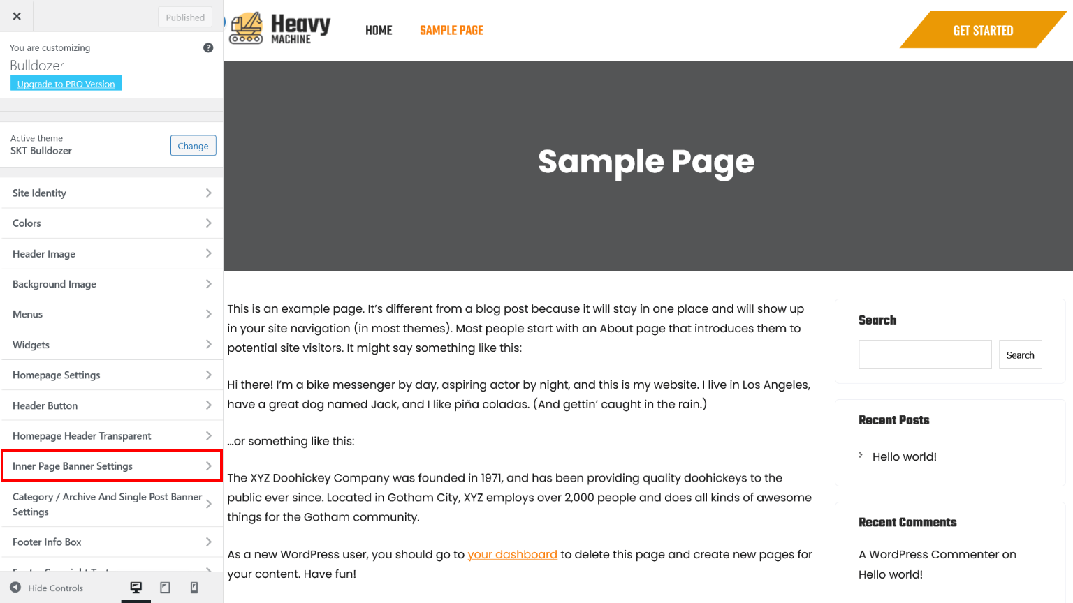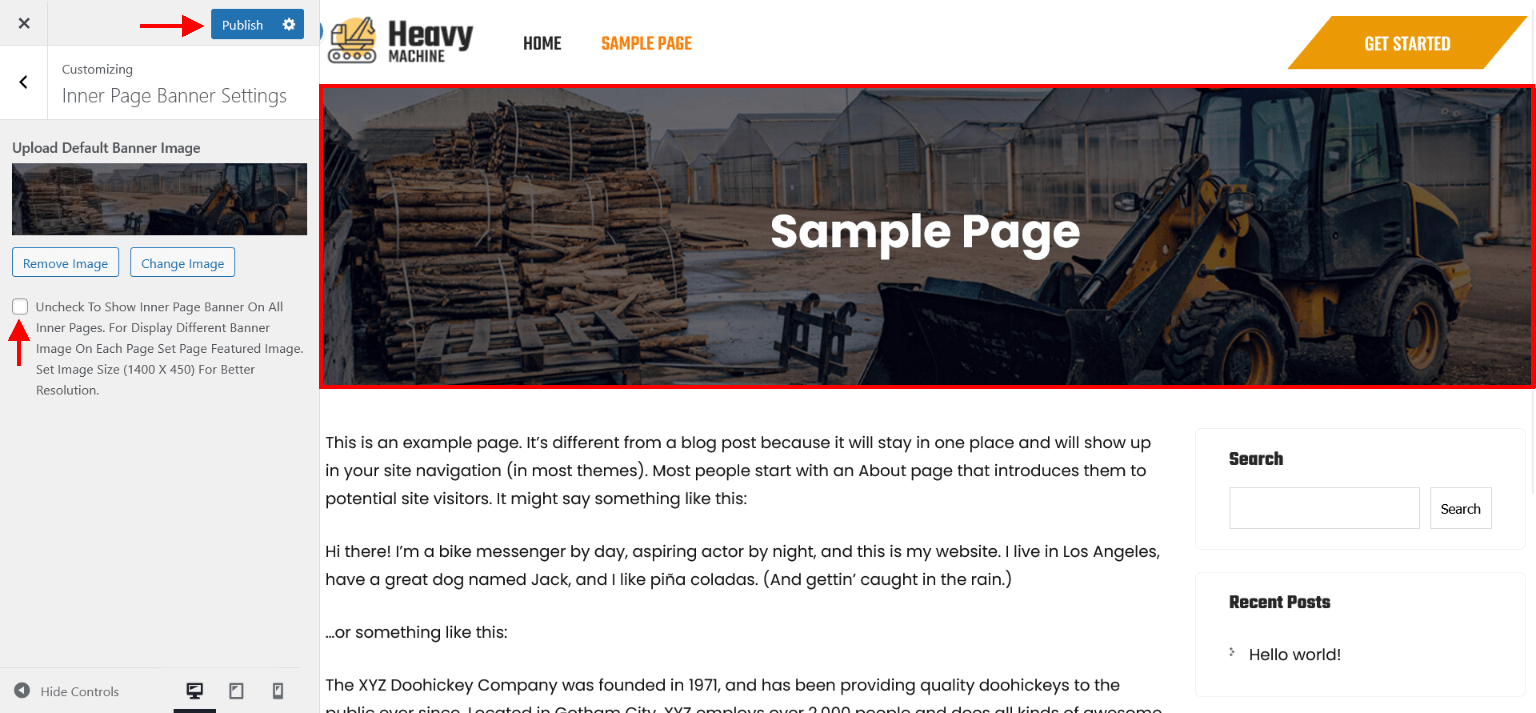Inner Page Banner Settings
