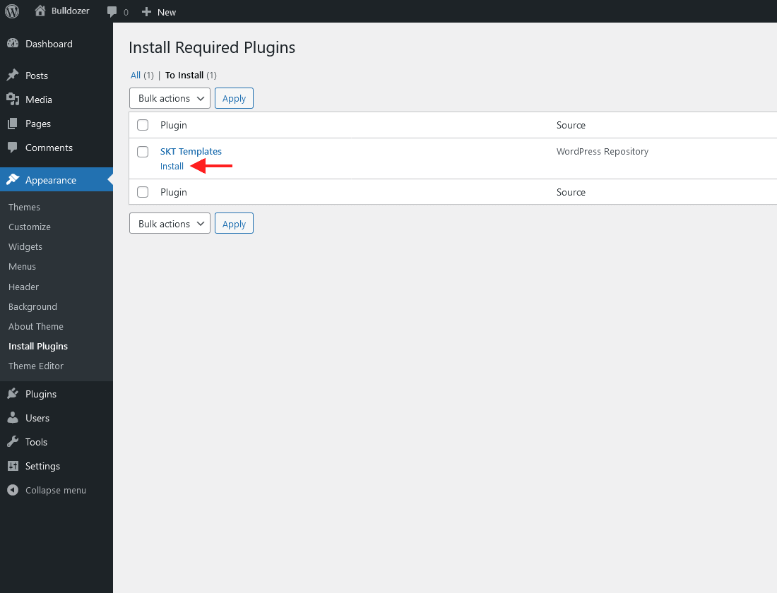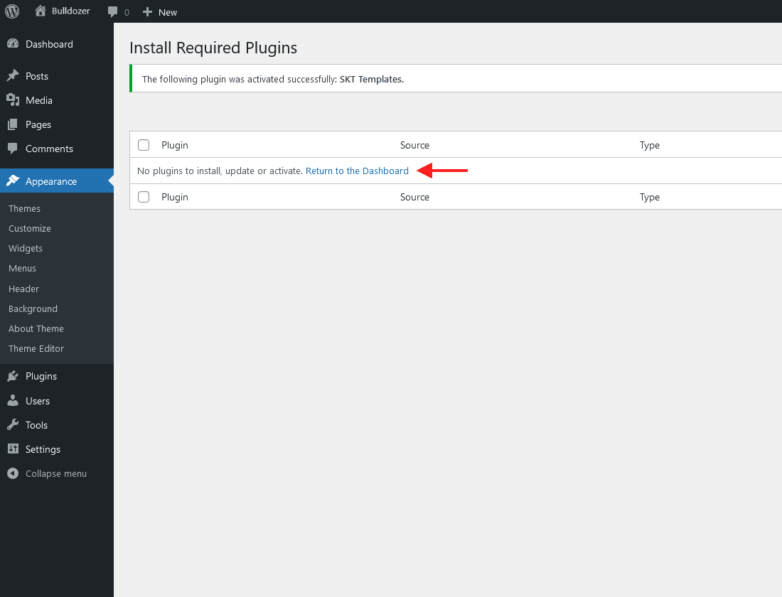 - Click on Choose File button and select skt-bulldozer.zip then click on Install Now button and wait for the install to complete.