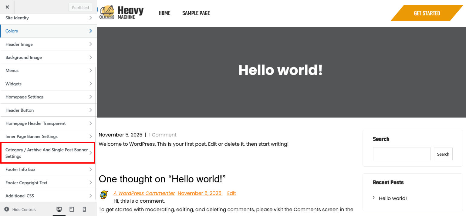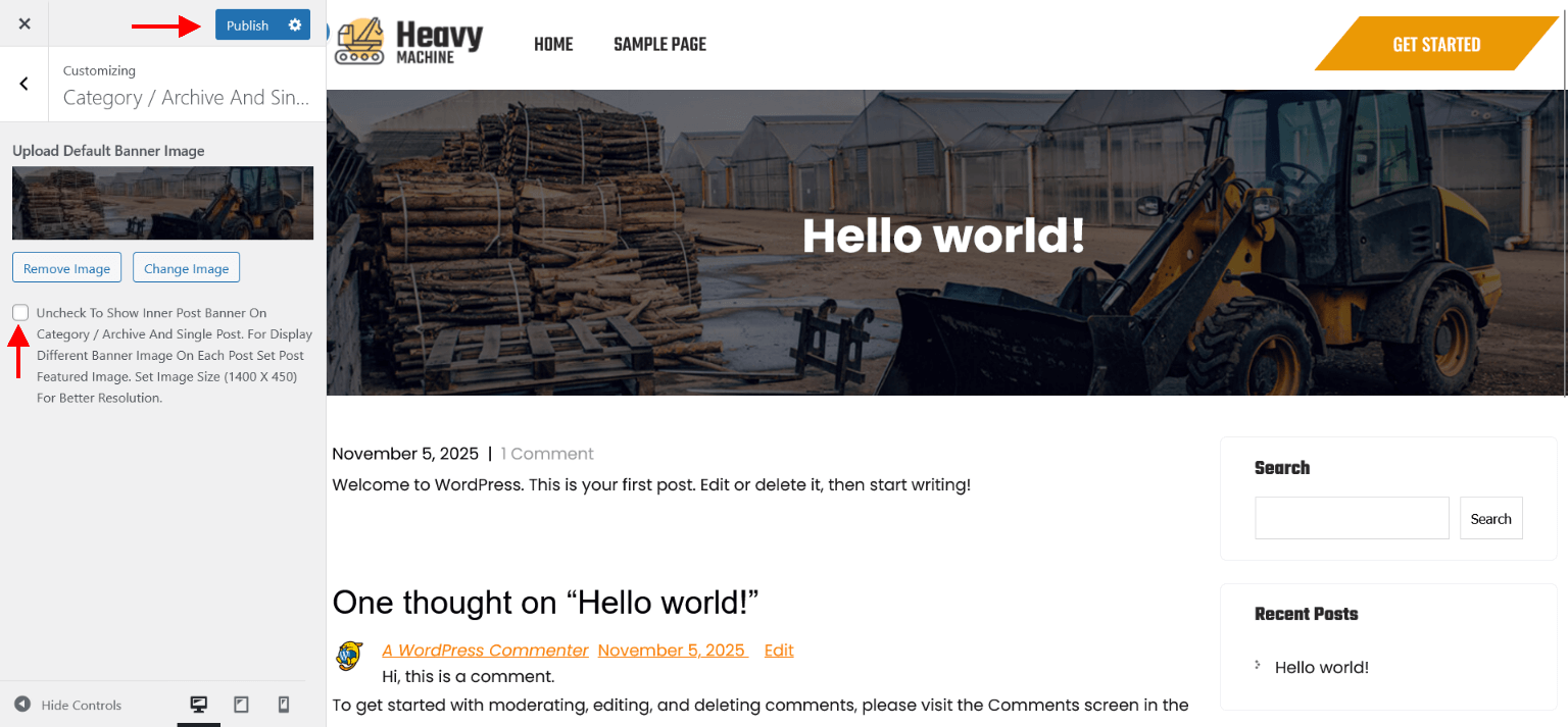 Category / Archive And Single Post Banner Settings