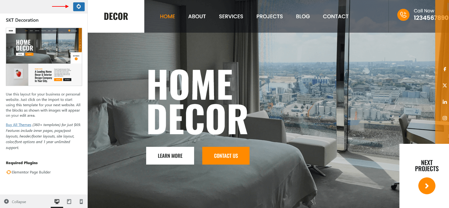 • Now on SKT Templates page simply click on "Elementor Templates" button and going on "SKT Decoration" and click on More Details button.
